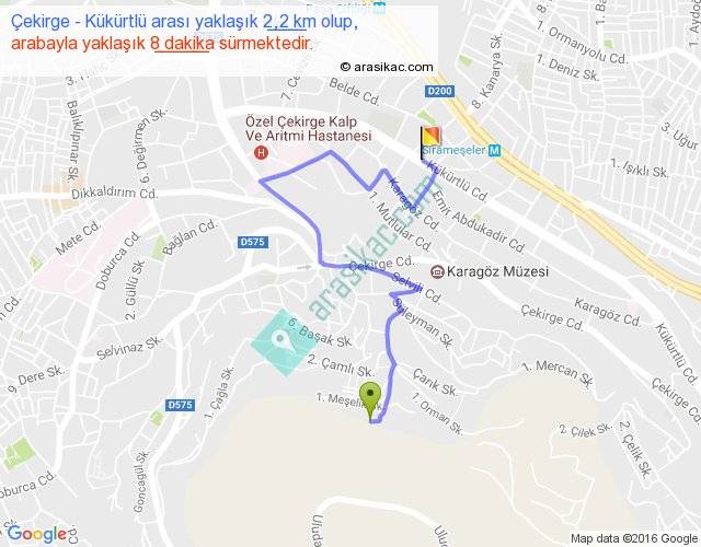 Çekirge - Kükürtlü arası yaklaşık olarak 90 km/h ile yukarıda belirtilen sürede olup, iki yerin kuş uçuşu uzaklığı (mesafesi) 1'dir. Yolculuk otobüsle 10 dakika sürmektedir.