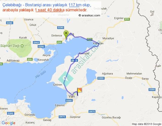 Çelebibağı - Bostaniçi arası yaklaşık olarak 90 km/h ile yukarıda belirtilen sürede olup, iki yerin kuş uçuşu uzaklığı (mesafesi) 54'dir. Yolculuk otobüsle 2 saat 10 dakika sürmektedir.