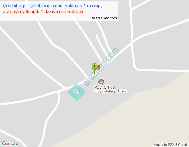 Çelebibağı - Çelebibağı arası yaklaşık olarak 90 km/h ile yukarıda belirtilen sürede olup, iki yerin kuş uçuşu uzaklığı (mesafesi) 0'dir. Yolculuk otobüsle 1 dakika sürmektedir.