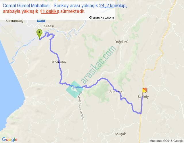 Cemal Gürsel Mahallesi - Senkoy arası yaklaşık olarak 90 km/h ile yukarıda belirtilen sürede olup, iki yerin kuş uçuşu uzaklığı (mesafesi) 13'dir. Yolculuk otobüsle 53 dakika sürmektedir.