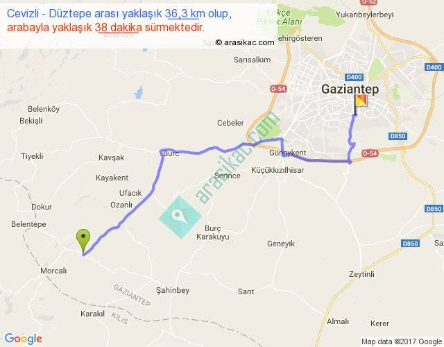 Cevizli - Düztepe arası yaklaşık olarak 90 km/h ile yukarıda belirtilen sürede olup, iki yerin kuş uçuşu uzaklığı (mesafesi) 27'dir. Yolculuk otobüsle 49 dakika sürmektedir.