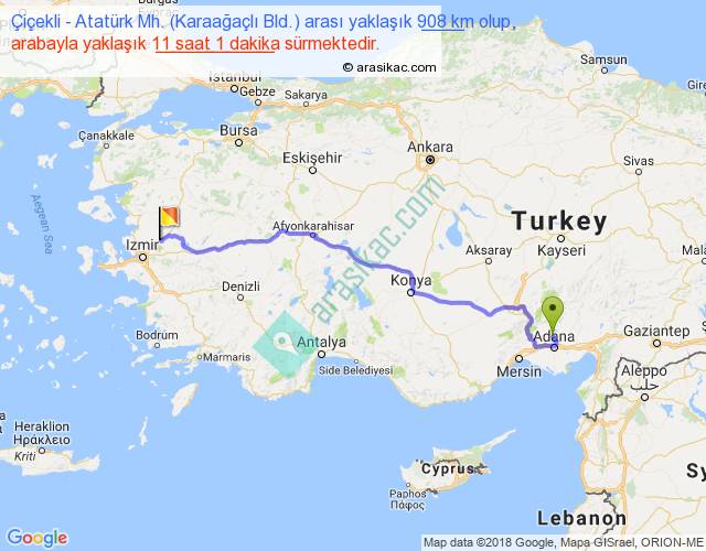 Çiçekli - Atatürk Mh. (Karaağaçlı Bld.) arası detaylı bilgi