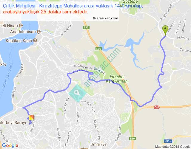 Eğer Çiftlik Mahallesi Kirazlıtepe Mahallesi arası ne kadar yakar (benzin/mazot) diyorsanız, kilometrede 3 ₺ yakan bir aracınız var ise 42, km'de 4 ₺ yakan bir aracınız var ise 56, km'de 5 ₺ yakan bir aracınız var ise 70 ile bu yolculuğu tamamlayabilirsiniz.