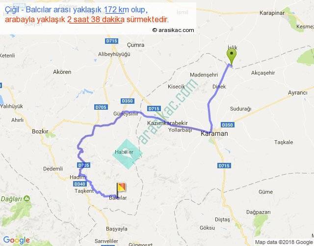 Çiğil - Balcılar arası yaklaşık olarak 90 km/h ile yukarıda belirtilen sürede olup, iki yerin kuş uçuşu uzaklığı (mesafesi) 86'dir. Yolculuk otobüsle 3 saat 25 dakika sürmektedir.