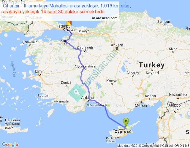Cihangir - Ihlamurkuyu Mahallesi arası yaklaşık olarak 90 km/h ile yukarıda belirtilen sürede olup, iki yerin kuş uçuşu uzaklığı (mesafesi) 745'dir. Eğer belirtilen yerler arasında uçak seferi var ise bu süre uçakla 1 saat 08 dakika'ya kadar düşebilir. Yolculuk otobüsle 18 saat 51 dakika sürmektedir.