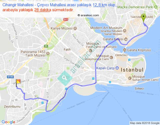 Eğer Cihangir Mahallesi Çırpıcı Mahallesi arası ne kadar yakar (benzin/mazot) diyorsanız, kilometrede 3 ₺ yakan bir aracınız var ise 36, km'de 4 ₺ yakan bir aracınız var ise 48, km'de 5 ₺ yakan bir aracınız var ise 60 ile bu yolculuğu tamamlayabilirsiniz.