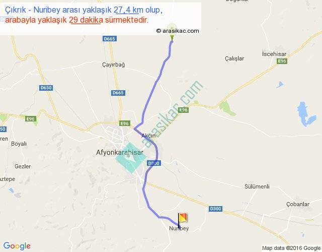 Çıkrık - Nuribey arası yaklaşık olarak 90 km/h ile yukarıda belirtilen sürede olup, iki yerin kuş uçuşu uzaklığı (mesafesi) 22'dir. Yolculuk otobüsle 37 dakika sürmektedir.