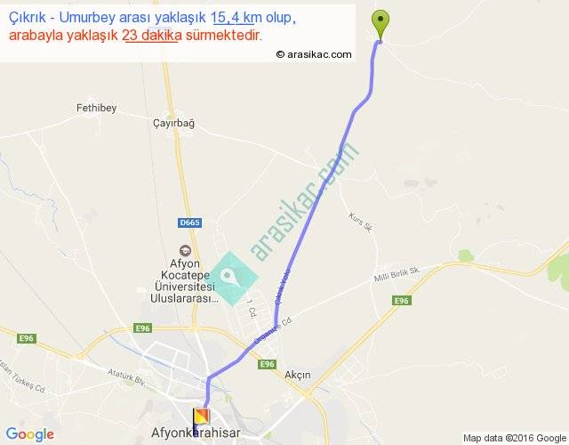 Çıkrık - Umurbey arası yaklaşık olarak 90 km/h ile yukarıda belirtilen sürede olup, iki yerin kuş uçuşu uzaklığı (mesafesi) 14'dir. Yolculuk otobüsle 29 dakika sürmektedir.
