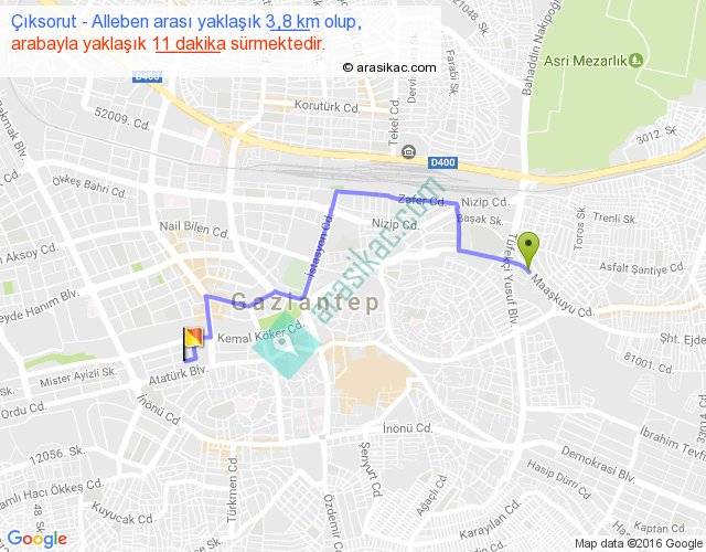 Çıksorut - Alleben arası yaklaşık olarak 90 km/h ile yukarıda belirtilen sürede olup, iki yerin kuş uçuşu uzaklığı (mesafesi) 2'dir. Yolculuk otobüsle 14 dakika sürmektedir.