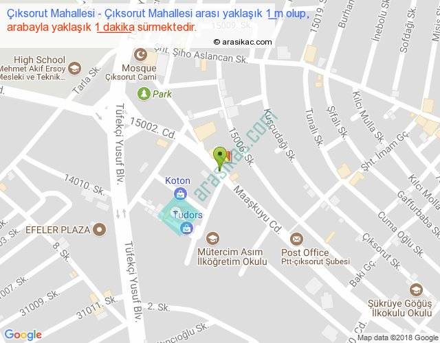 Çıksorut Mahallesi - Çıksorut Mahallesi arası yaklaşık olarak 90 km/h ile yukarıda belirtilen sürede olup, iki yerin kuş uçuşu uzaklığı (mesafesi) 0'dir. Yolculuk otobüsle 1 dakika sürmektedir.