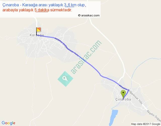 Çınaroba - Karaağa arası yaklaşık olarak 90 km/h ile yukarıda belirtilen sürede olup, iki yerin kuş uçuşu uzaklığı (mesafesi) 3'dir. Yolculuk otobüsle 6 dakika sürmektedir.