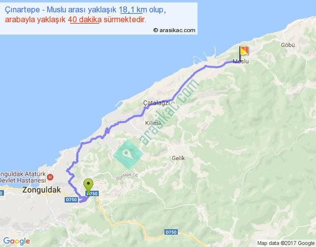 Çınartepe - Muslu arası yaklaşık olarak 90 km/h ile yukarıda belirtilen sürede olup, iki yerin kuş uçuşu uzaklığı (mesafesi) 12'dir. Yolculuk otobüsle 52 dakika sürmektedir.