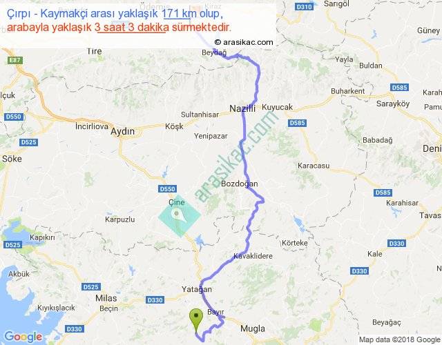 Çırpı - Kaymakçi arası yaklaşık olarak 90 km/h ile yukarıda belirtilen sürede olup, iki yerin kuş uçuşu uzaklığı (mesafesi) 107'dir. Yolculuk otobüsle 3 saat 57 dakika sürmektedir.