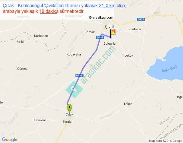 Çıtak - Kızılcasöğüt Çivril Denizli arası yaklaşık olarak 90 km/h ile yukarıda belirtilen sürede olup, iki yerin kuş uçuşu uzaklığı (mesafesi) 18'dir. Yolculuk otobüsle 23 dakika sürmektedir.