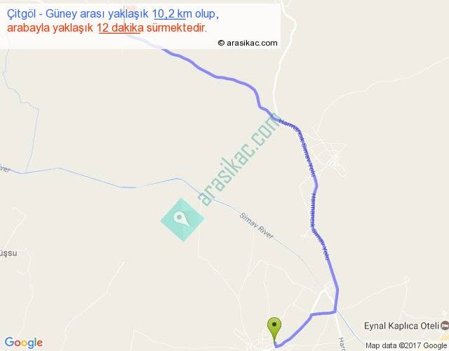 Çitgöl - Güney arası yaklaşık olarak 90 km/h ile yukarıda belirtilen sürede olup, iki yerin kuş uçuşu uzaklığı (mesafesi) 7'dir. Yolculuk otobüsle 15 dakika sürmektedir.