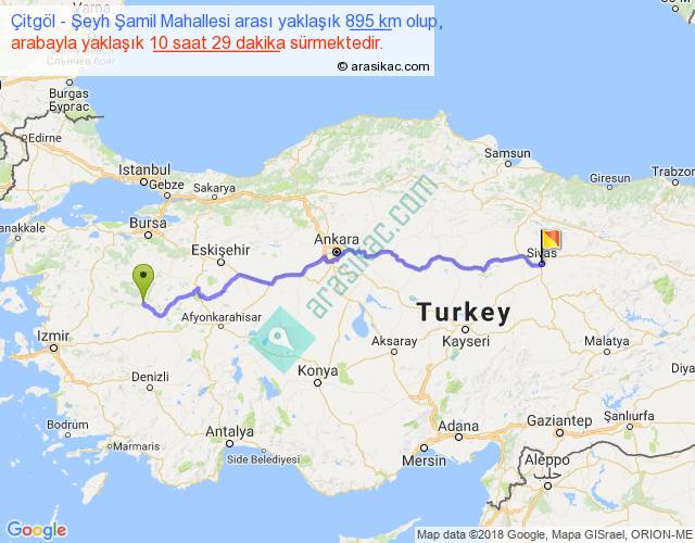 Çitgöl - Şeyh Şamil Mahallesi arası yaklaşık olarak 90 km/h ile yukarıda belirtilen sürede olup, iki yerin kuş uçuşu uzaklığı (mesafesi) 695'dir. Eğer belirtilen yerler arasında uçak seferi var ise bu süre uçakla 1 saat 04 dakika'ya kadar düşebilir. Yolculuk otobüsle 13 saat 37 dakika sürmektedir.
