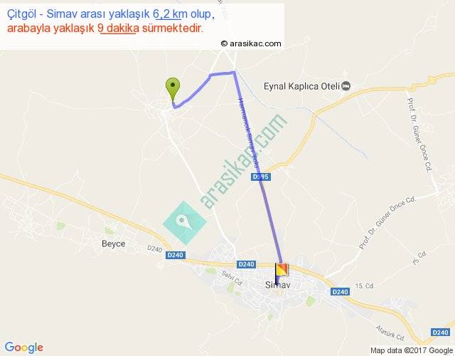 Çitgöl - Simav arası yaklaşık olarak 90 km/h ile yukarıda belirtilen sürede olup, iki yerin kuş uçuşu uzaklığı (mesafesi) 4'dir. Yolculuk otobüsle 11 dakika sürmektedir.