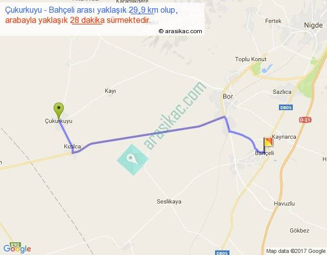 Çukurkuyu - Bahçeli arası yaklaşık olarak 90 km/h ile yukarıda belirtilen sürede olup, iki yerin kuş uçuşu uzaklığı (mesafesi) 24'dir. Yolculuk otobüsle 36 dakika sürmektedir.