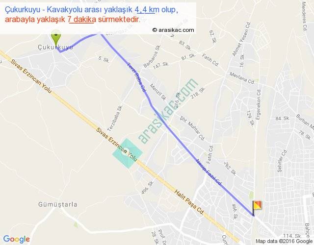 Çukurkuyu - Kavakyolu arası yaklaşık olarak 90 km/h ile yukarıda belirtilen sürede olup, iki yerin kuş uçuşu uzaklığı (mesafesi) 4'dir. Yolculuk otobüsle 9 dakika sürmektedir.
