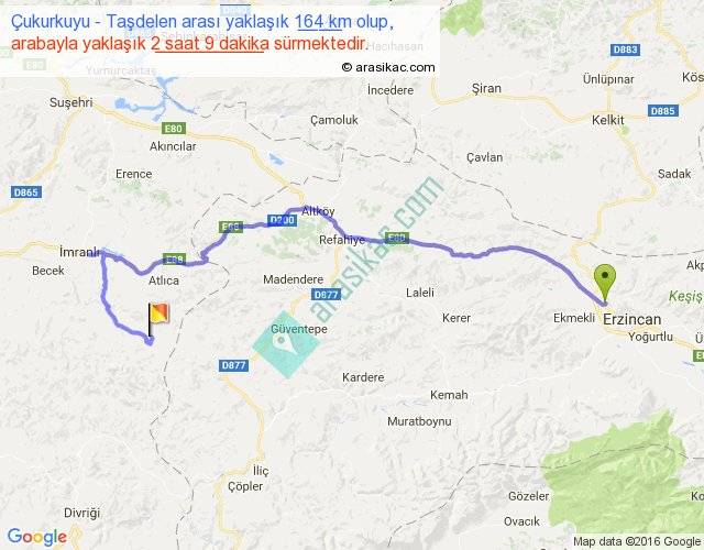 Çukurkuyu - Taşdelen arası yaklaşık olarak 90 km/h ile yukarıda belirtilen sürede olup, iki yerin kuş uçuşu uzaklığı (mesafesi) 97'dir. Yolculuk otobüsle 2 saat 47 dakika sürmektedir.