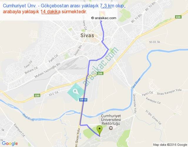 Cumhuriyet Ünv. - Gökçebostan arası detaylı bilgi