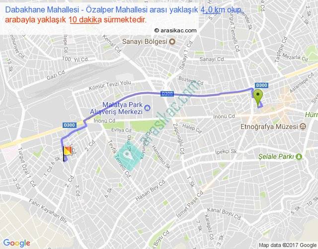 Dabakhane Mahallesi - Özalper Mahallesi arası yaklaşık olarak 90 km/h ile yukarıda belirtilen sürede olup, iki yerin kuş uçuşu uzaklığı (mesafesi) 3'dir. Yolculuk otobüsle 13 dakika sürmektedir.