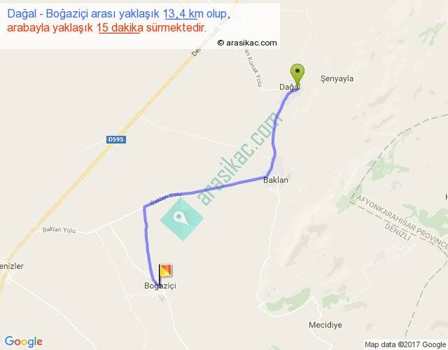 Dağal - Boğaziçi arası yaklaşık olarak 90 km/h ile yukarıda belirtilen sürede olup, iki yerin kuş uçuşu uzaklığı (mesafesi) 10'dir. Yolculuk otobüsle 19 dakika sürmektedir.