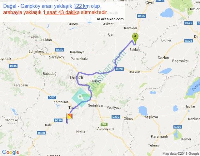 Dağal - Garipköy arası yaklaşık olarak 90 km/h ile yukarıda belirtilen sürede olup, iki yerin kuş uçuşu uzaklığı (mesafesi) 80'dir. Yolculuk otobüsle 2 saat 13 dakika sürmektedir.
