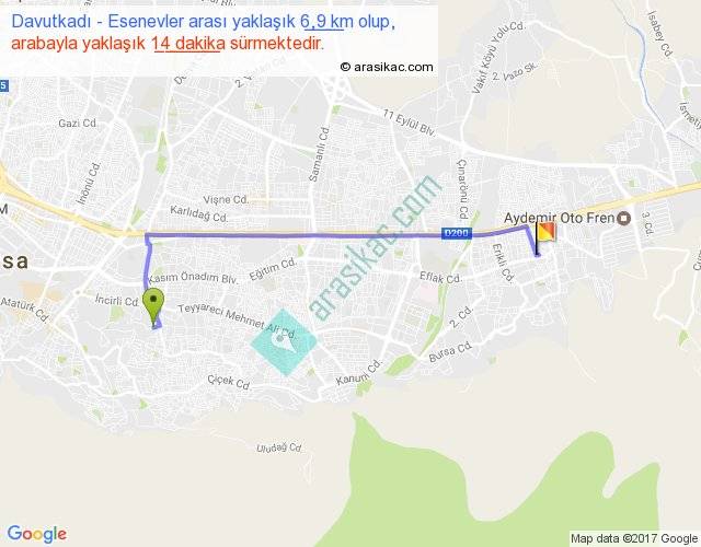 Eğer Davutkadı Esenevler arası ne kadar yakar (benzin/mazot) diyorsanız, kilometrede 3 ₺ yakan bir aracınız var ise 18, km'de 4 ₺ yakan bir aracınız var ise 24, km'de 5 ₺ yakan bir aracınız var ise 30 ile bu yolculuğu tamamlayabilirsiniz.