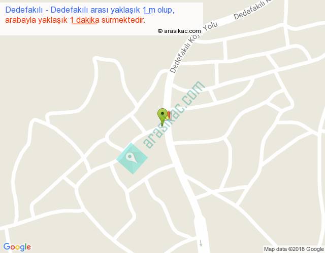 Dedefakılı - Dedefakılı arası yaklaşık olarak 90 km/h ile yukarıda belirtilen sürede olup, iki yerin kuş uçuşu uzaklığı (mesafesi) 0'dir. Yolculuk otobüsle 1 dakika sürmektedir.