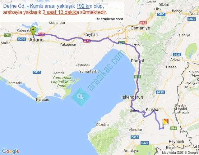 Eğer Defne Cd. Kumlu arası ne kadar yakar (benzin/mazot) diyorsanız, kilometrede 3 ₺ yakan bir aracınız var ise 576, km'de 4 ₺ yakan bir aracınız var ise 768, km'de 5 ₺ yakan bir aracınız var ise 960 ile bu yolculuğu tamamlayabilirsiniz.