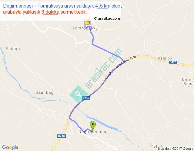 Değirmenbaşı - Tomruksuyu arası yaklaşık olarak 90 km/h ile yukarıda belirtilen sürede olup, iki yerin kuş uçuşu uzaklığı (mesafesi) 3'dir. Yolculuk otobüsle 11 dakika sürmektedir.