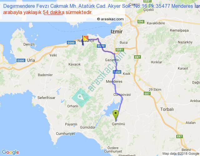 Degırmendere Fevzı Cakmak Mh. Atatürk Cad. Akyer Sok. No:16 Pk:35477 Menderes İzmir - 35320 Narlıdere İzmir arası detaylı bilgi