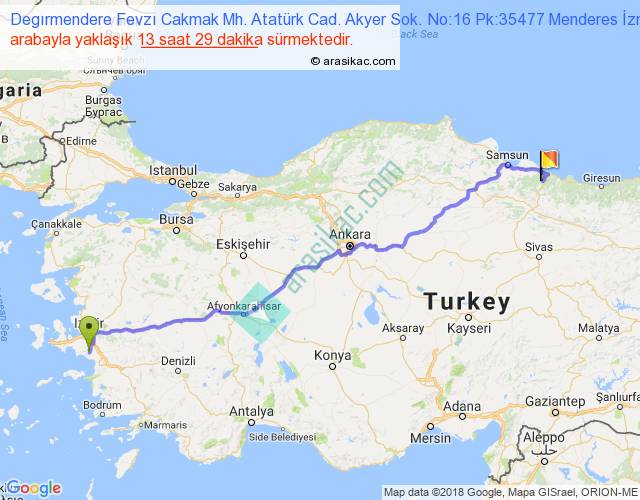 Degırmendere Fevzı Cakmak Mh. Atatürk Cad. Akyer Sok. No:16 Pk:35477 Menderes İzmir - Çaybaşı arası detaylı bilgi