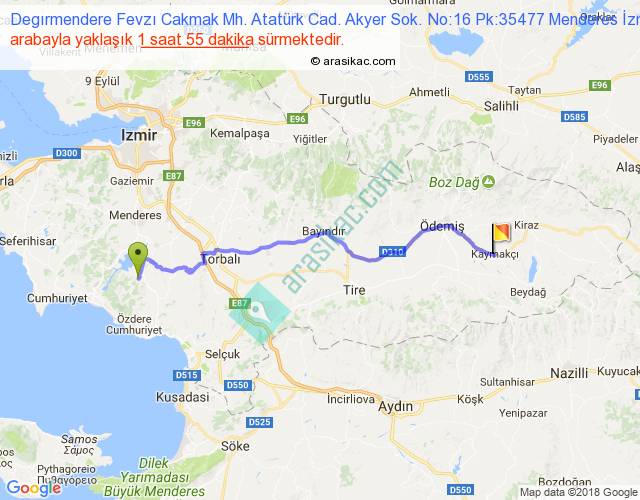 Degırmendere Fevzı Cakmak Mh. Atatürk Cad. Akyer Sok. No:16 Pk:35477 Menderes İzmir - Kaymakçi arası detaylı bilgi