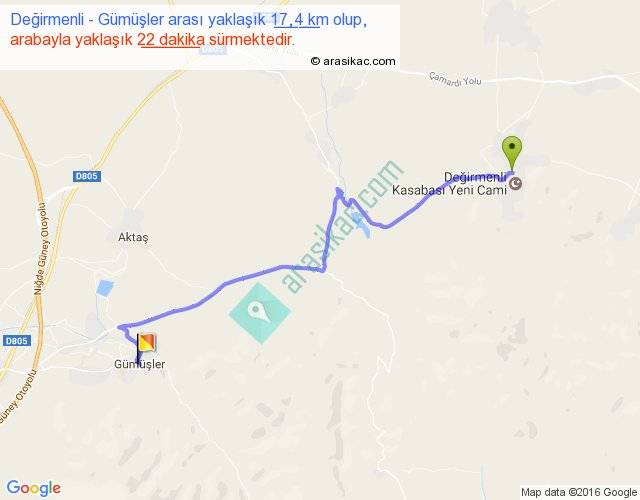 Değirmenli - Gümüşler arası yaklaşık olarak 90 km/h ile yukarıda belirtilen sürede olup, iki yerin kuş uçuşu uzaklığı (mesafesi) 13'dir. Yolculuk otobüsle 28 dakika sürmektedir.
