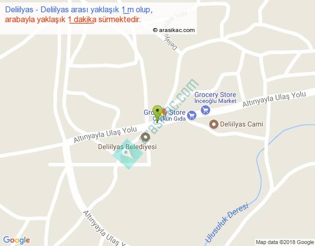 Deliilyas - Deliilyas arası yaklaşık olarak 90 km/h ile yukarıda belirtilen sürede olup, iki yerin kuş uçuşu uzaklığı (mesafesi) 0'dir. Yolculuk otobüsle 1 dakika sürmektedir.