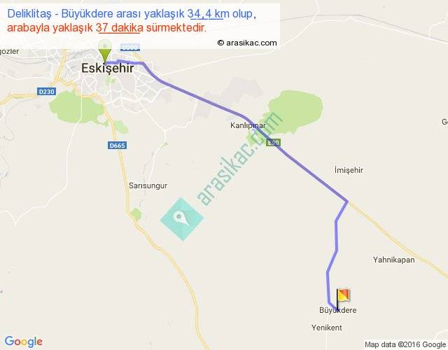 Deliklitaş - Büyükdere arası yaklaşık olarak 90 km/h ile yukarıda belirtilen sürede olup, iki yerin kuş uçuşu uzaklığı (mesafesi) 28'dir. Yolculuk otobüsle 48 dakika sürmektedir.
