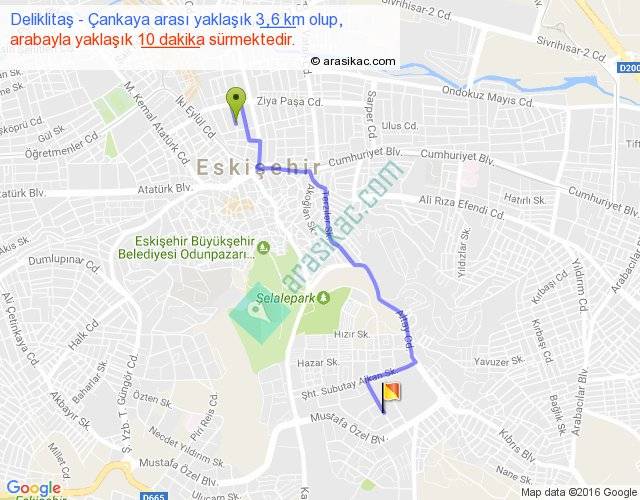Deliklitaş - Çankaya arası yaklaşık olarak 90 km/h ile yukarıda belirtilen sürede olup, iki yerin kuş uçuşu uzaklığı (mesafesi) 2'dir. Yolculuk otobüsle 13 dakika sürmektedir.