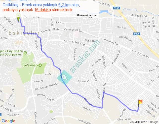 Deliklitaş - Emek arası yaklaşık olarak 90 km/h ile yukarıda belirtilen sürede olup, iki yerin kuş uçuşu uzaklığı (mesafesi) 4'dir. Yolculuk otobüsle 20 dakika sürmektedir.