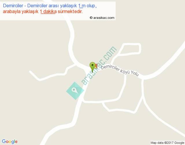 Demirciler - Demirciler arası yaklaşık olarak 90 km/h ile yukarıda belirtilen sürede olup, iki yerin kuş uçuşu uzaklığı (mesafesi) 0'dir. Yolculuk otobüsle 1 dakika sürmektedir.