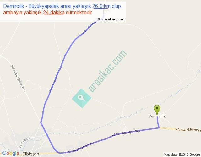Demircilik - Büyükyapalak arası yaklaşık olarak 90 km/h ile yukarıda belirtilen sürede olup, iki yerin kuş uçuşu uzaklığı (mesafesi) 11'dir. Yolculuk otobüsle 31 dakika sürmektedir.