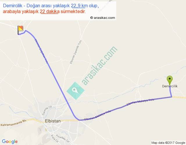 Demircilik - Doğan arası yaklaşık olarak 90 km/h ile yukarıda belirtilen sürede olup, iki yerin kuş uçuşu uzaklığı (mesafesi) 16'dir. Yolculuk otobüsle 28 dakika sürmektedir.