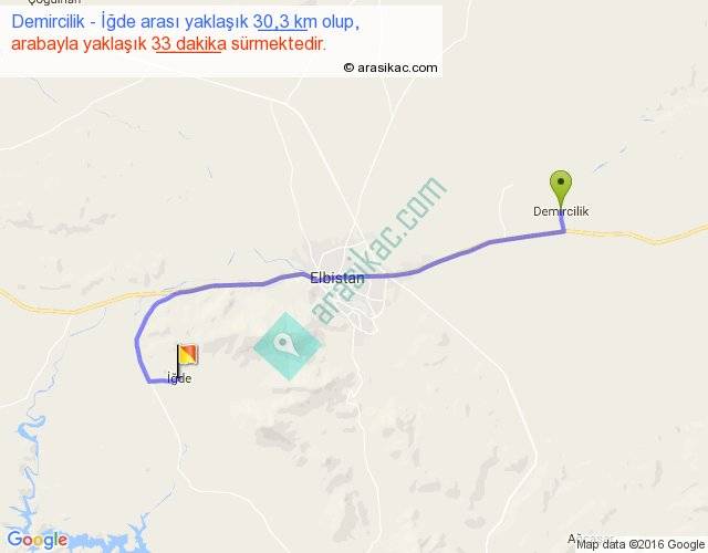 Demircilik - İğde arası yaklaşık olarak 90 km/h ile yukarıda belirtilen sürede olup, iki yerin kuş uçuşu uzaklığı (mesafesi) 22'dir. Yolculuk otobüsle 42 dakika sürmektedir.