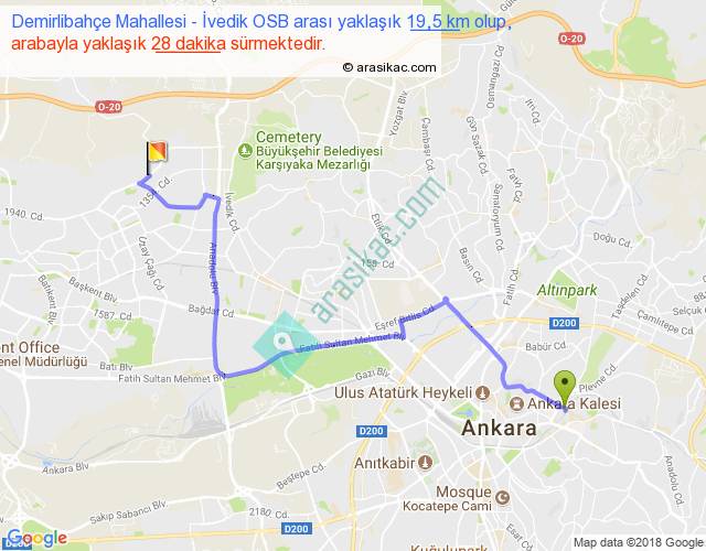 Demirlibahçe Mahallesi - İvedik OSB arası yaklaşık olarak 90 km/h ile yukarıda belirtilen sürede olup, iki yerin kuş uçuşu uzaklığı (mesafesi) 13'dir. Yolculuk otobüsle 36 dakika sürmektedir.
