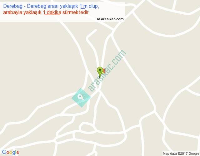 Derebağ - Derebağ arası yaklaşık olarak 90 km/h ile yukarıda belirtilen sürede olup, iki yerin kuş uçuşu uzaklığı (mesafesi) 0'dir. Yolculuk otobüsle 1 dakika sürmektedir.