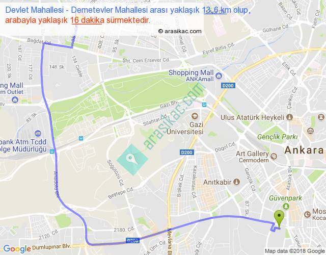 Eğer Devlet Mahallesi Demetevler Mahallesi arası ne kadar yakar (benzin/mazot) diyorsanız, kilometrede 3 ₺ yakan bir aracınız var ise 39, km'de 4 ₺ yakan bir aracınız var ise 52, km'de 5 ₺ yakan bir aracınız var ise 65 ile bu yolculuğu tamamlayabilirsiniz.