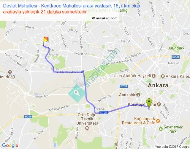 Eğer Devlet Mahallesi Kentkoop Mahallesi arası ne kadar yakar (benzin/mazot) diyorsanız, kilometrede 3 ₺ yakan bir aracınız var ise 48, km'de 4 ₺ yakan bir aracınız var ise 64, km'de 5 ₺ yakan bir aracınız var ise 80 ile bu yolculuğu tamamlayabilirsiniz.