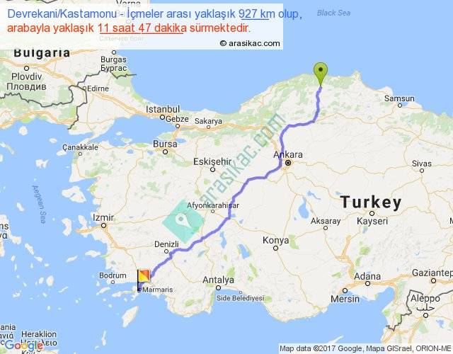 Devrekani Kastamonu - İçmeler arası yaklaşık olarak 90 km/h ile yukarıda belirtilen sürede olup, iki yerin kuş uçuşu uzaklığı (mesafesi) 726'dir. Eğer belirtilen yerler arasında uçak seferi var ise bu süre uçakla 1 saat 07 dakika'ya kadar düşebilir. Yolculuk otobüsle 15 saat 19 dakika sürmektedir.