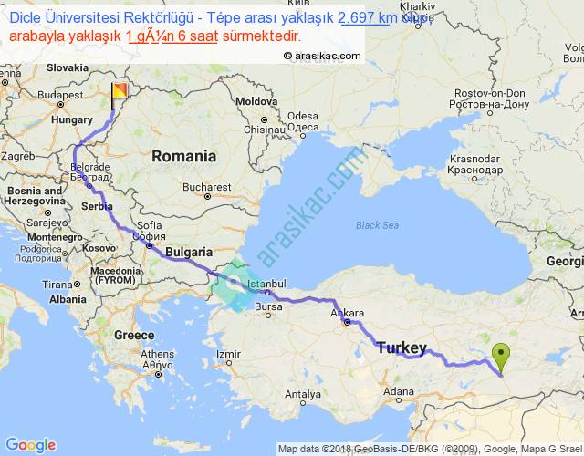 Dicle Üniversitesi Rektörlüğü - Tépe arası yaklaşık olarak 90 km/h ile yukarıda belirtilen sürede olup, iki yerin kuş uçuşu uzaklığı (mesafesi) 1834'dir. Eğer belirtilen yerler arasında uçak seferi var ise bu süre uçakla 2 saat 49 dakika'ya kadar düşebilir. Yolculuk otobüsle 1 gün 15 saat sürmektedir.